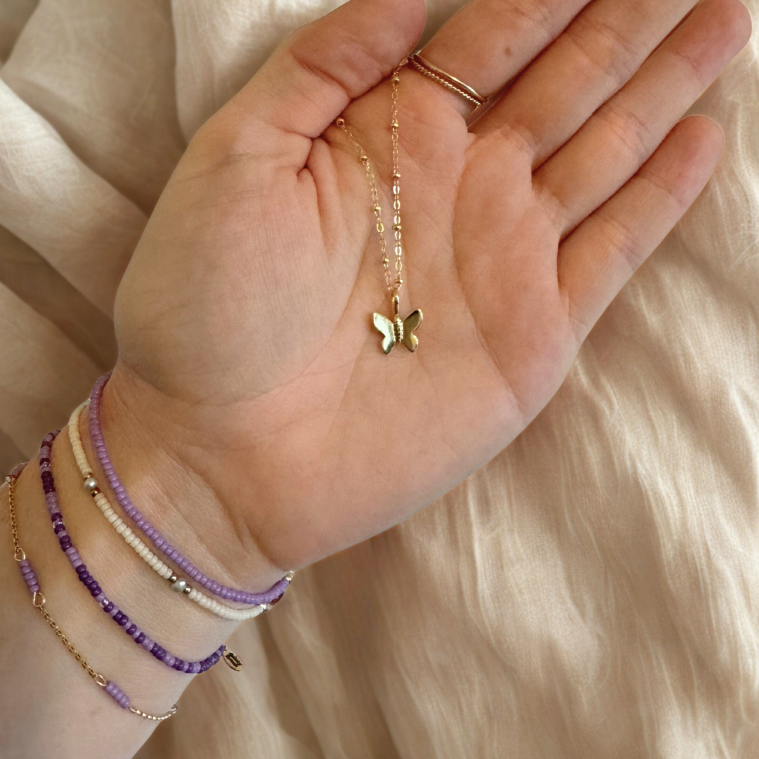 Pearly Beaded BraceletPurchased this one to stack with my permeant bracelets and it gives it that cute coastal feeling. - Vana